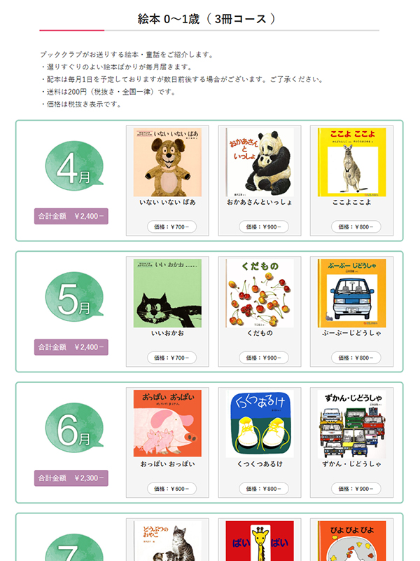 - ■0歳児・1歳児・2歳児時は、2冊コース・3冊コースが選べ、コースの選択肢が広い